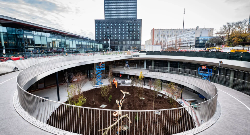 • Une rampe cyclable hélicoïdale de 80 m relie la place Béraudier à la mezzanine de la vélostation.