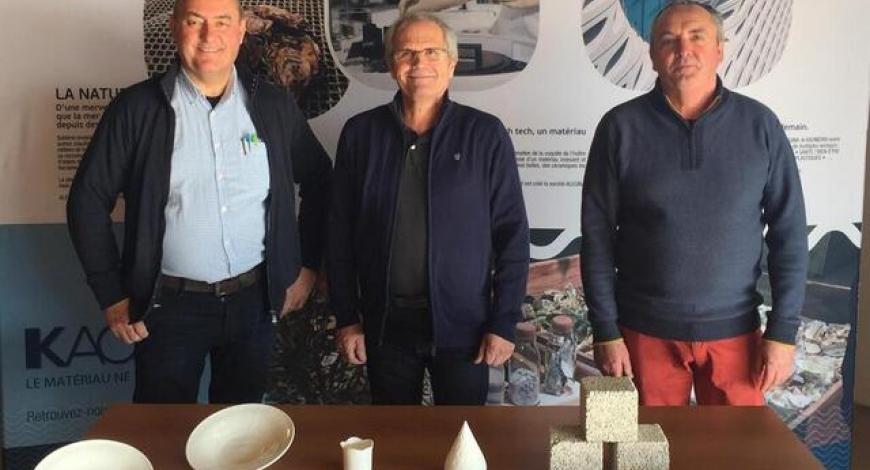 La start-up yonnaise Agelina a mis au point 3 types de matériaux à partir de coquilles d'huîtres :...