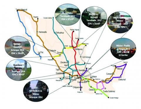 Ces chaussées emploient des matériaux dont les caractéristiques mécaniques sont supérieures à celles des chaussées classiques rencontrées au Mexique. À ce jour, au moins 7 projets emploient cette technique (figure 1).