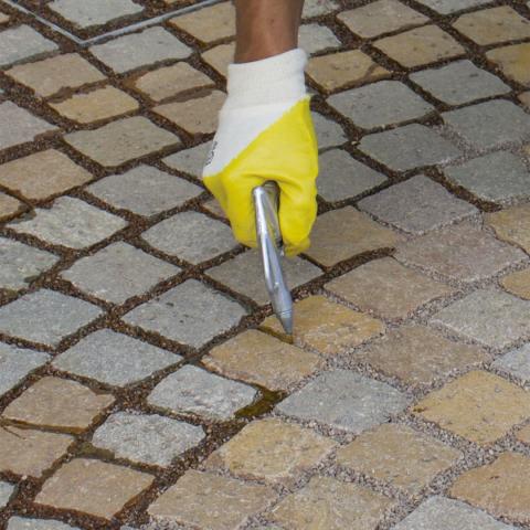 Ce liant polyuréthane monocomposant, sans solvant, à faible odeur, peut être utilisé pour le remplissage des joints entre pavés, bordures et galets (photo 3). Il préserve la perméabilité des joints et sa mise en œuvre ne nécessite ni ciment ni ressource en eau.